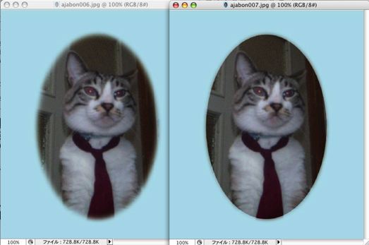 で、実務っぽい感じでは、こう↓、ボカシっぽいもん(左)をシャッキリっぽく(右)することもできた、と。